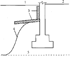 关键问题是如何确定折减系数。岩石饱和单轴抗压强度与地基承载力之间的不同在于:第一,抗压强度试验时,岩石试件处于无侧限的单轴受力状态;而地基承载力则处于有围压的三轴应力状态。如果地基是完整的,则后者远远高于前者。第二,岩块强度与岩体强度是不同的,原因在于岩体中存在或多或少、或宽或窄、或显或隐的裂隙,这些裂隙不同程度地降低了地基的承载力。显然,越完整、折减越少;越破碎,折减越多。由于情况复杂,折减系数的取值原则上由地方经验确定,无经验时,按岩体的完整程度,给出了一个范围值。经试算和与已有的经验对比,条文给出的折减系数是安全的。