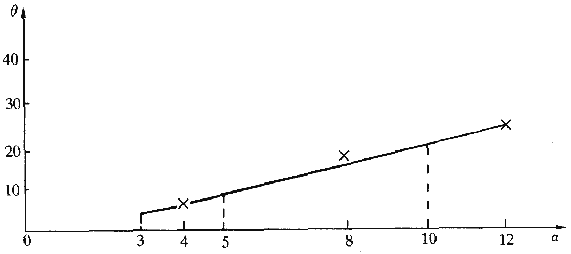 按表3实测压力做图8,可以看出,当荷载增加到a点后,传到软土顶界面上的压力急骤增加,即压力扩散角迅速降低,到b点时,α=5时为28.6°,α=6时为28°,如果按a点所对应的压力分别为180kPa、240kPa,其对应的扩散角为30.34°及36.85°,换言之,在p-s曲线中比例界限范围内的θ 角比破坏时略高。