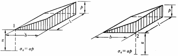 矩形面积上三角形分布荷载作用下的附加应力系数α与平均附加应力系数α