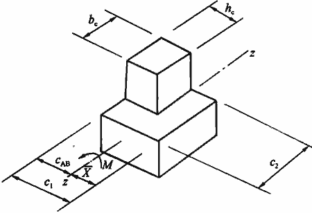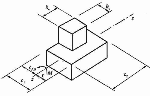 3 对于角柱,应按式(P.0.1-12)~式(P.0.1-17)进行计算。公式(P.0.1-12)~式(P.0.1-17)适用于柱两相邻外侧齐筏板边缘的角柱。对外伸式筏板,角柱柱下筏板冲切临界截面的计算模式应根据角柱外侧筏板的悬挑长度和柱子的边长确定。 当角柱两相邻外侧筏板的悬挑长度分别小于或等于(h0+0.5bc)和(hc+0.5hc)时,冲切临界截面可计算至垂直于自由边的板端,计算c1、c2及Is值应计及角柱外侧筏板的悬挑长度;当角柱两相邻外侧筏板的悬挑长度大于(h0+0.5bc)和(h0+0.5hc)时,角柱柱下筏板冲切临界截面的计算模式同内柱。