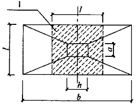 ab——冲切破坏锥体最不利一侧斜截面在基础底面积范围内的下边长(m),当冲切破坏锥体的底面落在基础底面以内(图8.2.8a、b),计算柱与基础交接处的受冲切承载力时,取柱宽加两倍基础有效高度;当计算基础变阶处的受冲切承载力时,取上阶宽加两倍该处的基础有效高度;