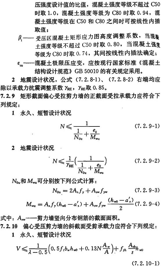7.2.4 抗震设计的双肢剪力墙,其墙肢不宜出现小偏心受拉;当任一墙肢为偏心受拉时,另一墙肢的弯矩设计值及剪力设计值应乘以增大系数1.25。