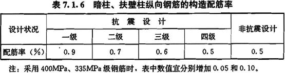 1)竖向钢筋最小量应比表7.2.16中的数值提高0.001Ac采用;