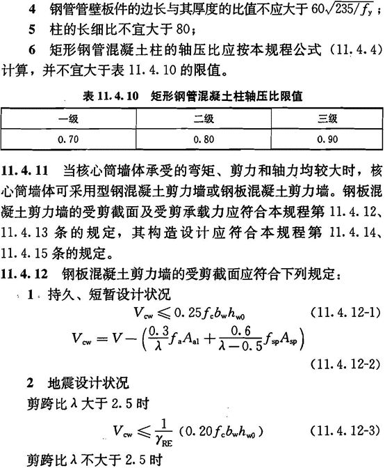 11.4.18 钢筋混凝土核心筒、内筒的设计,除应符合本规程第9.1.7条的规定外,尚应符合下列规定: