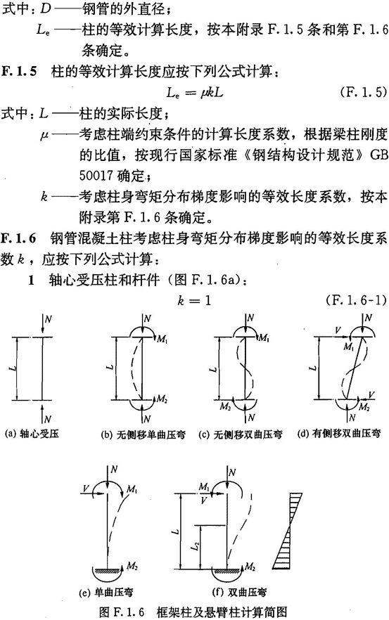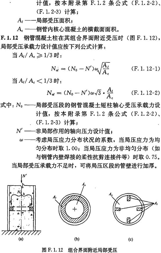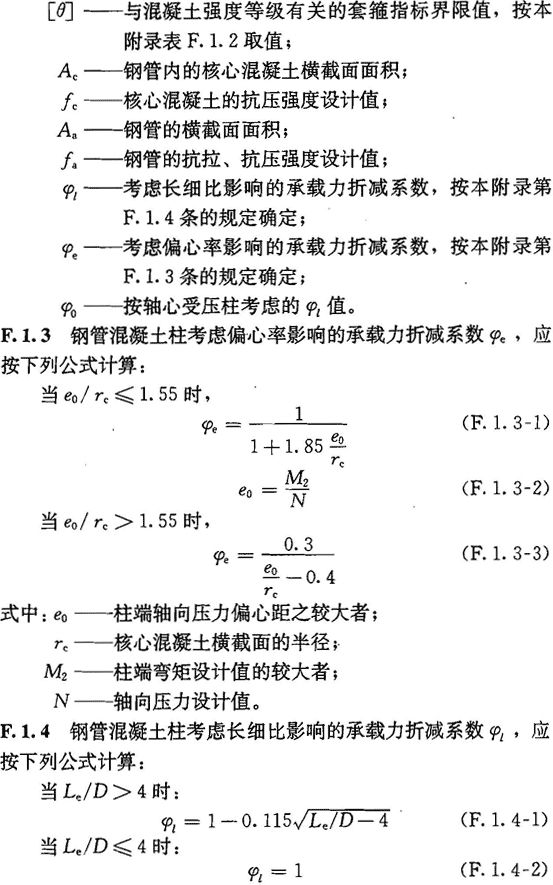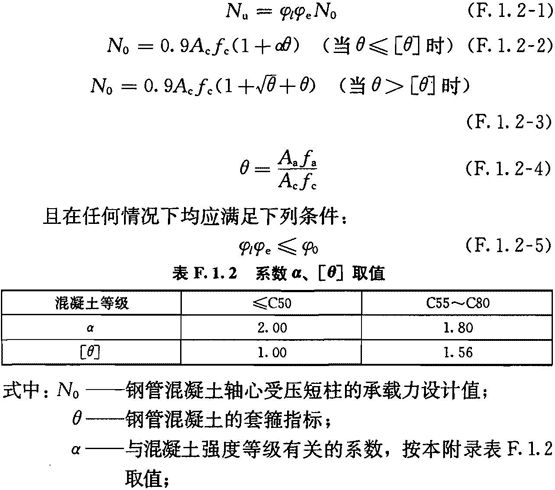 F.1.2 钢管混凝土单肢柱的轴向受压承载力设计值应按下列公式计算: