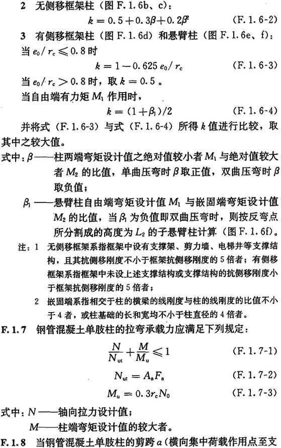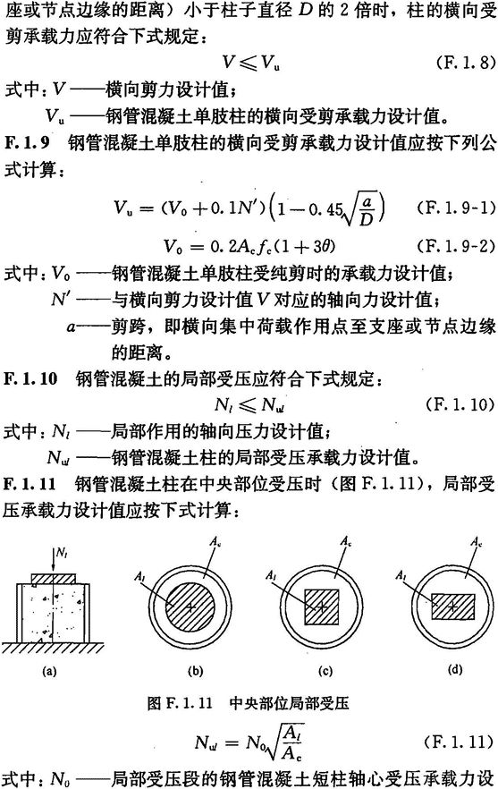 F.1.1 钢管混凝土单肢柱的轴向受压承载力应满足下列公式规定: