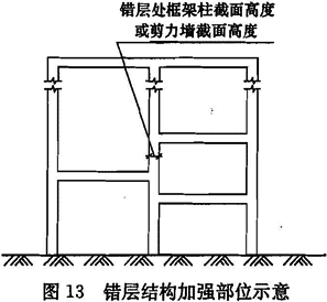 震害和计算分析表明,转换层宜设置在底盘楼层范围内,不宜设置在底盘以上的塔楼内(图14)。若转换层设置在底盘屋面的上层塔楼内时,易形成结构薄弱部位,不利于结构抗震,应尽量避免;否则应采取有效的抗震措施,包括增大构件内力、提高抗震等级等。