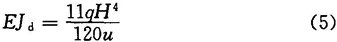 结构的弹性等效侧向刚度EJd,可近似按倒三角形分布荷载作用下结构顶点位移相等的原则,将结构的侧向刚度折算为竖向悬臂受弯构件的等效侧向刚度。假定倒三角形分布荷载的最大值为q,在该荷载作用下结构顶点质心的弹性水平位移为u,房屋高度为H,则结构的弹性等效侧向刚度EJd可按下式计算: