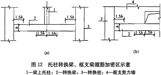 10.2.8 转换梁受力较复杂,为保证转换梁安全可靠,分别对框支梁和托柱转换梁的截面尺寸及配筋构造等,提出了具体要求。