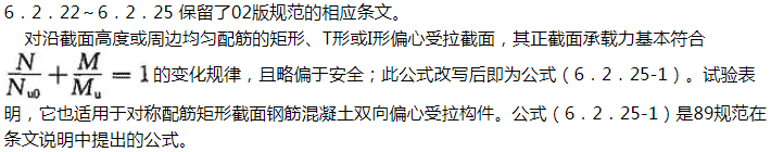 6.2.9 在02版规范中,将圆形、圆环形截面混凝土构件的正截面承载力列在正文,本次修订将圆形截面、圆环形截面与任意截面构件的正截面承载力计算一同列入附录。