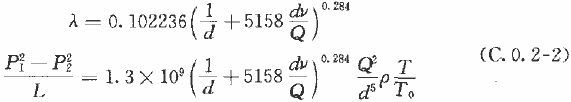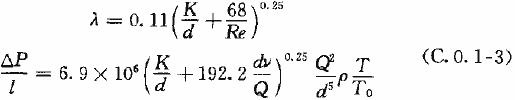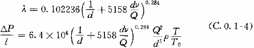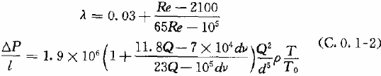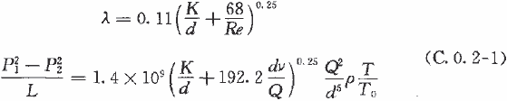 根据燃气在管道中不同的运动状态,其单位长度的摩擦阻力损失采用下列各式计算: