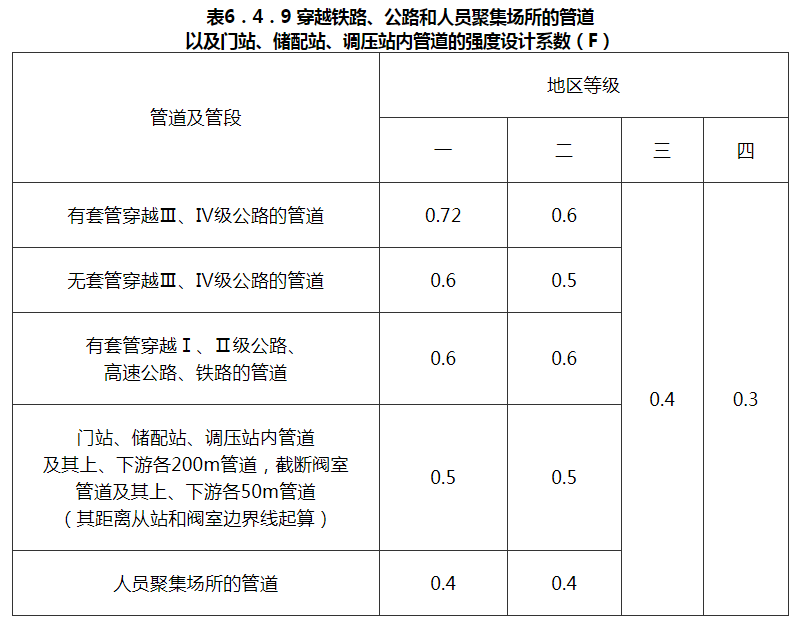 6.1.6 城镇燃气管的设计压力(P)分为7级,并应符合表6.1.6 的要求。