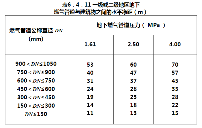 6.1.1 本章适用于压力不大于4.0Mpa(表压)的城镇燃气(不包括液态燃气)室外输配工程的设计。