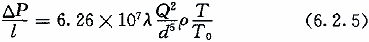 6.2.6 高压、次高压和中压燃气管道的单位长度摩擦阻力损失,应按式(6.2.6-1)计算:
