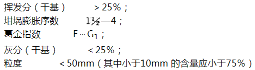 注:1、生产铁合金焦时,应选用低灰分、弱粘结的块煤。