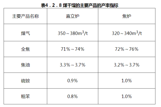 4.2.8 煤干馏的主要产品的产率指标,可按表4.2.8 采用: