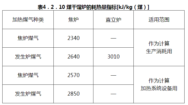 煤干馏炉的耗热量指标,宜按表4.2.10选用。