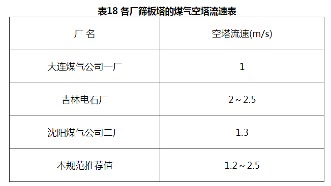3 本条所列数据是近年来筛板塔设计及实践操作经验的总结,一般认为是合适的。各厂筛板塔的空塔流速见表18。