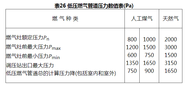 5 根据本条规定,低压管道压力情况如表26。
