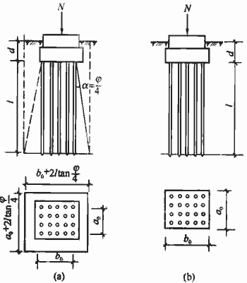 R.0.3 本规范公式(5.3.5)中附加压力计算,应为桩底平面处的附加压力。实体基础的支承面积可按图R. 0.3采用。实体深基础桩基沉降计算经验系数ψps应根据地区桩基础沉降观测资料及经验统计确定。在不具备条件时,ψps值可按表R.0.3选用。
