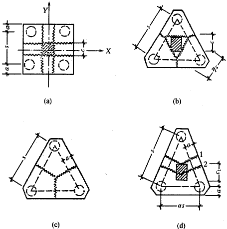 (a)四桩承台;(b)等边三桩承台(一);(c)等边三桩承台(二);(d)等腰三桩承台