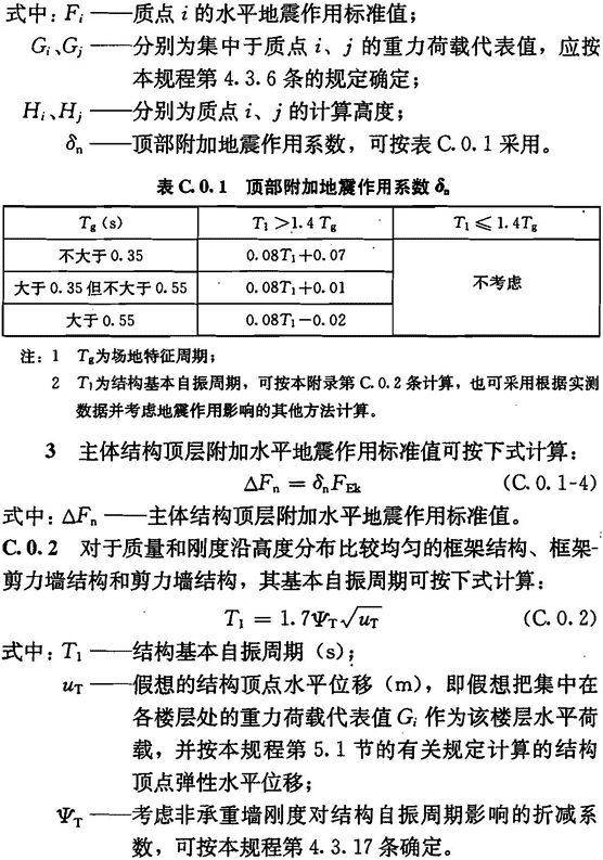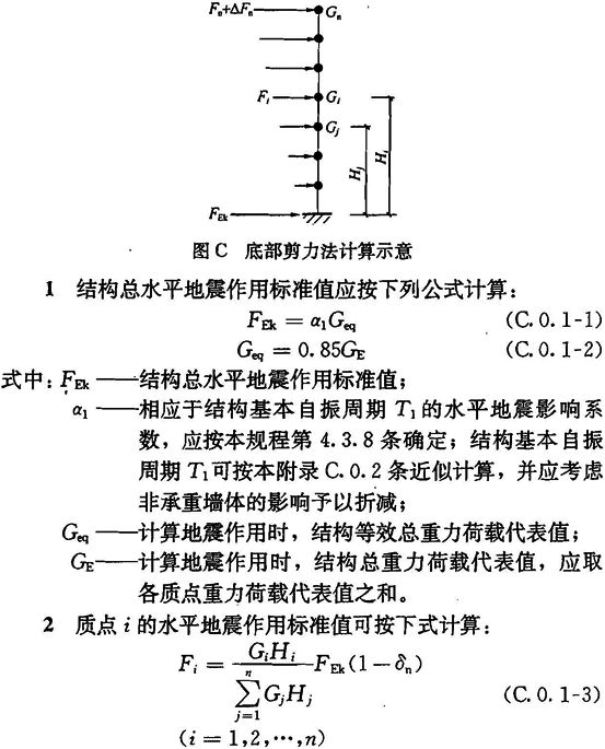 C.0.1 采用底部剪力法计算高层建筑结构的水平地震作用时,各楼层在计算方向可仅考虑一个自由度(图C),并应符合下列规定: