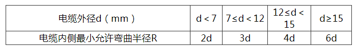 8.9.6 电缆敷设时,电缆的最小允许弯曲半径不应小于表8.9.6的规定。