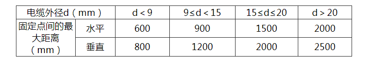 8.9.8 除支架敷设在支架处固定外,电缆敷设时,其固定点之间的距离不应大于表8.9.8的规定。